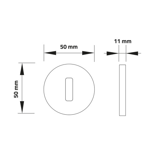 Avec son diamètre de 50 mm et son épaisseur de 11 mm, elle allie lignes épurées et sobriété élégante, idéale pour rehausser des portes modernes ou classiques.