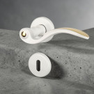 Apportez du caractère à vos portes avec la paire de poignées EVITA sur rosace, livrée avec la paire de rosaces de porte (fonction entrée de clé). L’association harmonieuse du blanc lumineux et des accents dorés confère à ce modèle un style classique et élégant, idéal pour rehausser instantanément l’atmosphère de votre intérieur.